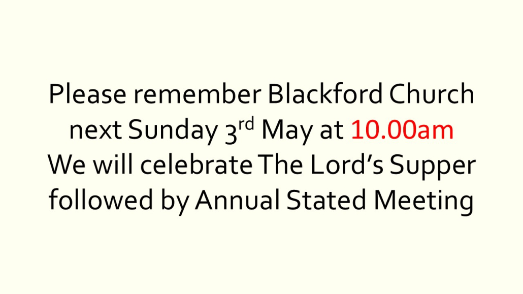The Service will be followed by afternoon tea in Ardoch Church Hall. ALL WELCOME.