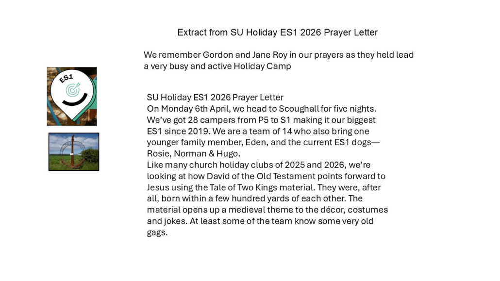 The Kirk Session commends this publication of the weekly round up of news from Perth Presbytery. It is full of news and meetings from all around our Presbytery which as you know now covers a vast area. It is encouraging to see so many activities publicised including some of our own. Ann Gordon, our Presbytery Elder will be happy to discuss further, any items that interest you. Click to view the link Week beginning Friday 3rd April 2026 https://app.churchdesk.com/public/newsletter/31be7390-6c89-4a62-93db-a131dad08c6b